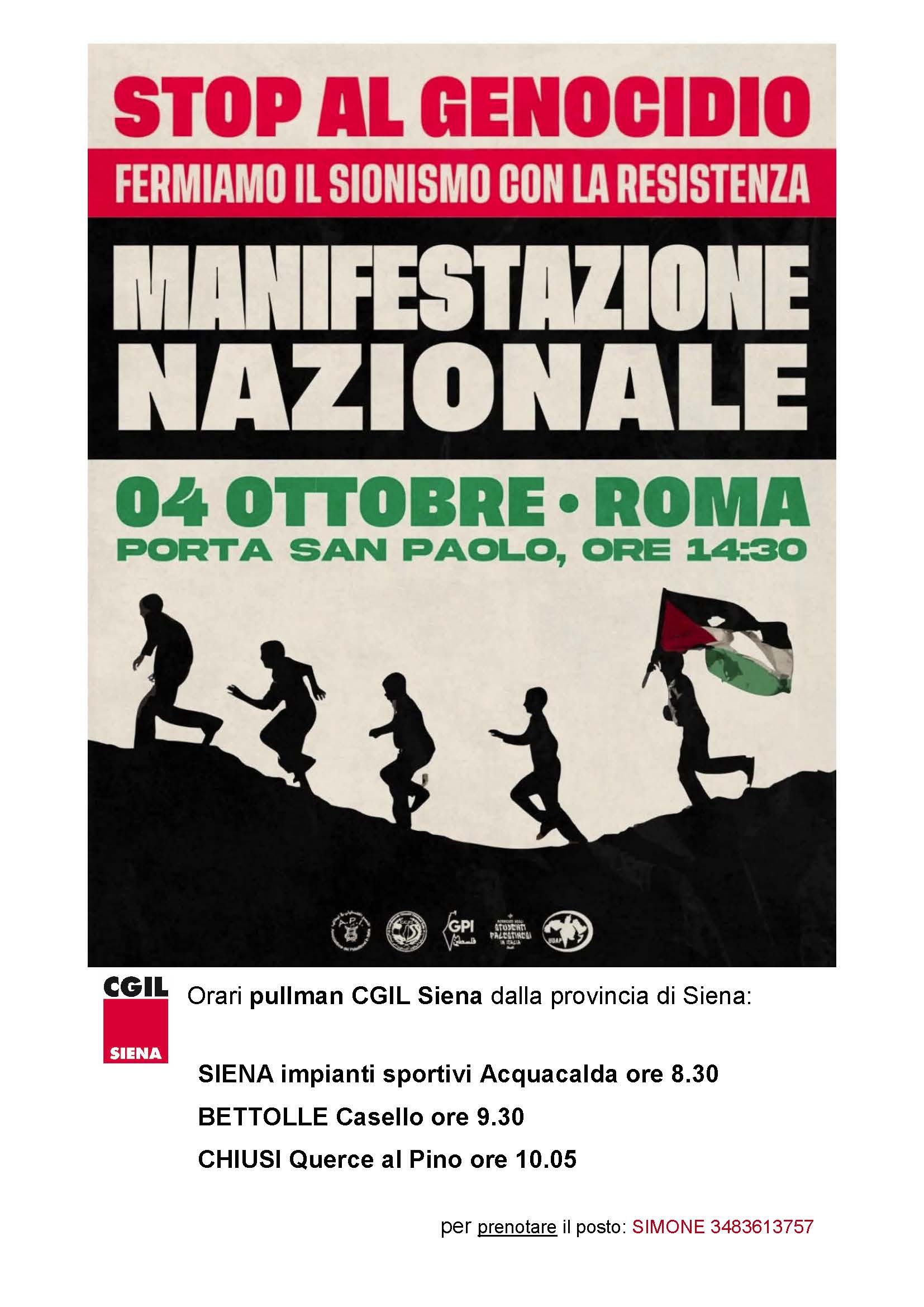 Manifestazione 4 ottobre a Roma: pullman CGIL da Siena.