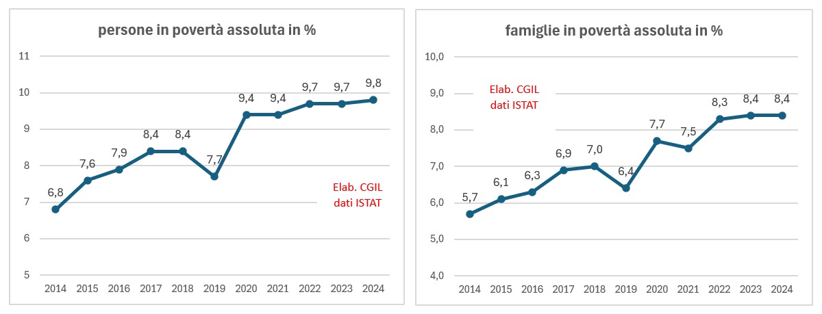 Roma, 14 ottobre – “La povertà assoluta continua a crescere, raggiungendo i livelli più elevati degli ultimi dieci anni, è diventata ormai una condizione diffusa e sempre più strutturale che riguarda 6 milioni di persone, una su dieci. Colpisce maggiormente le famiglie numerose e con figli minori, le famiglie operaie, quelle in affitto, quelle del Mezzogiorno, i migranti, e certifica le pesanti e crescenti diseguaglianze nel nostro Paese. Ma il Governo finge di non vedere e, peggio, decide di non contrastarla, lasciando sole quelle famiglie e quelle persone”. Così la segretaria confederale della CgilDaniela Barbaresi commenta il report diffuso oggi dall’Istat.