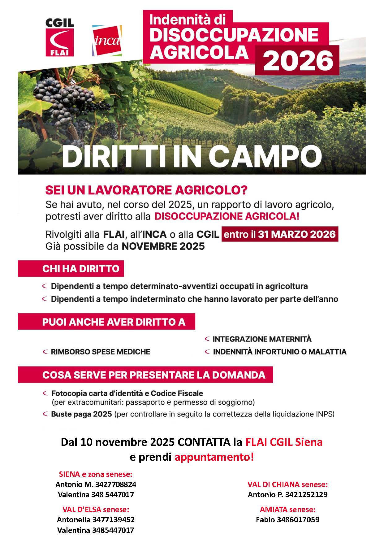 Dal 10 novembre 2025 contatta la Flai Cgil di Siena ENTRO IL 31 MARZO 2026.