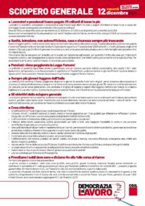 12 dicembre SCIOPERO GENERALE: chiusura sedi CGIL Siena intera giornata.