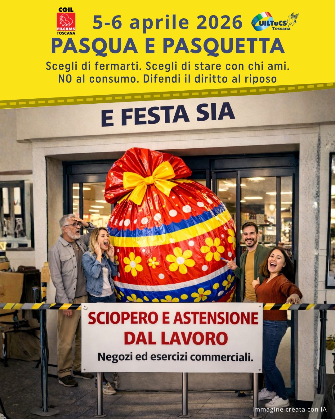 Pasqua e Pasquetta, Filcams Cgil e UilTucs indicono sciopero nel commercio in Toscana