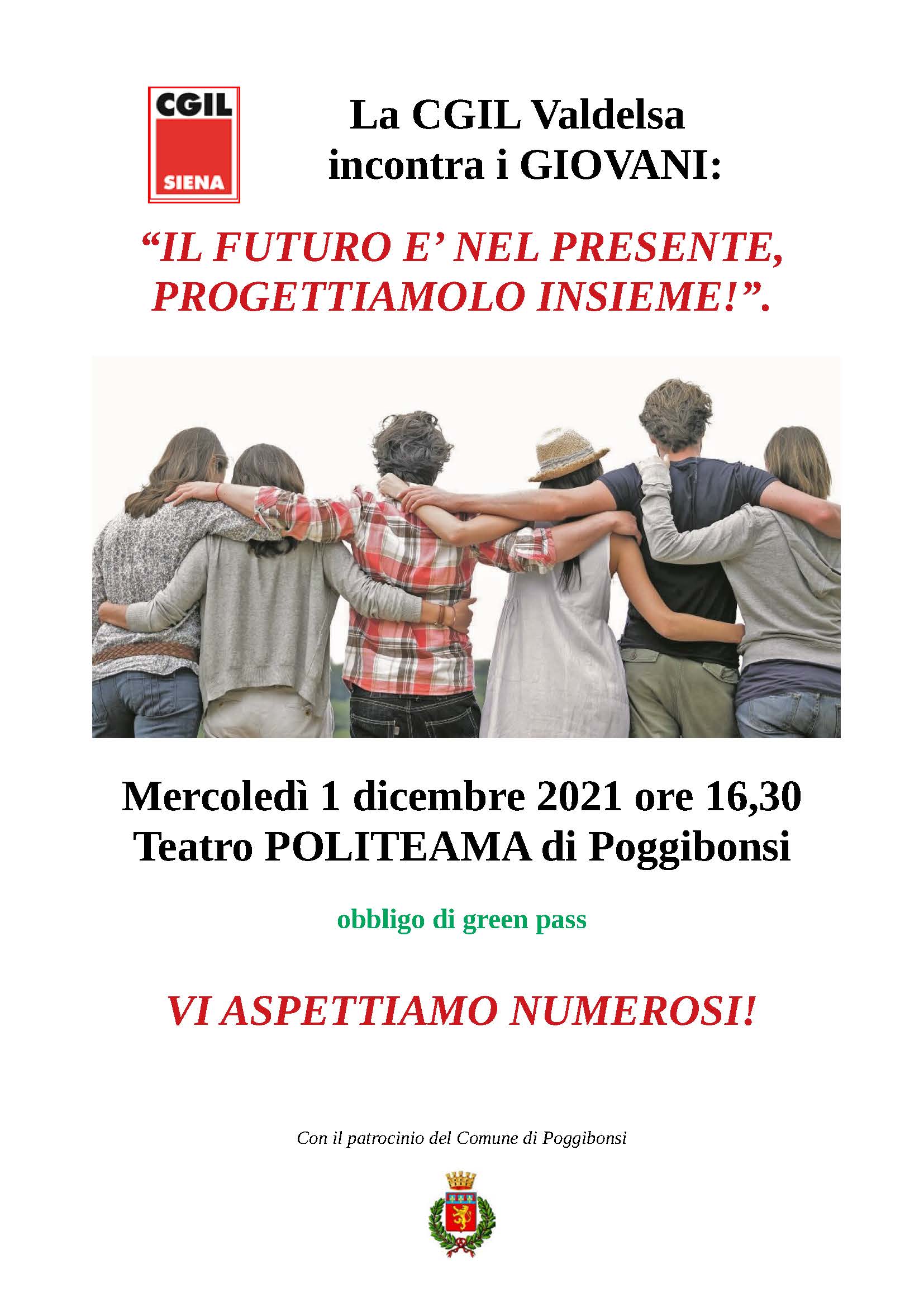 Poggibonsi, mercoledì 1 dicembre assemblea pubblica “La CGIL Valdelsa incontra i giovani”.