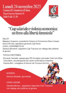 24 novembre iniziativa FIOM CGIL Toscana alla CCIAA di Siena: “Gap salariale e violenza economica. un freno alla libertà femminile”.