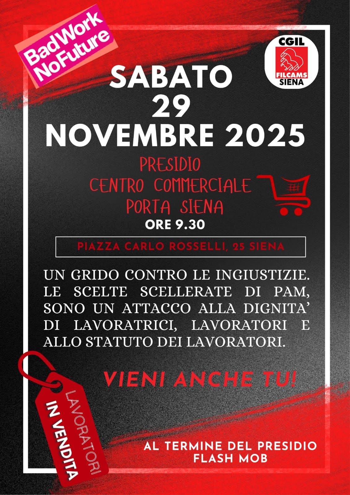 29 novembre: presidio con flash mob alla PAM del Centro commerciale ‘Porta Siena’.