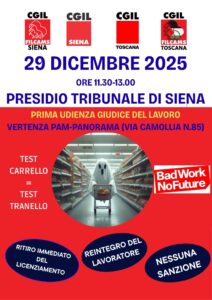 29 dicembre: presidio davanti al Tribunale di Siena per la prima udienza sulla vertenza PAM-PANORAMA