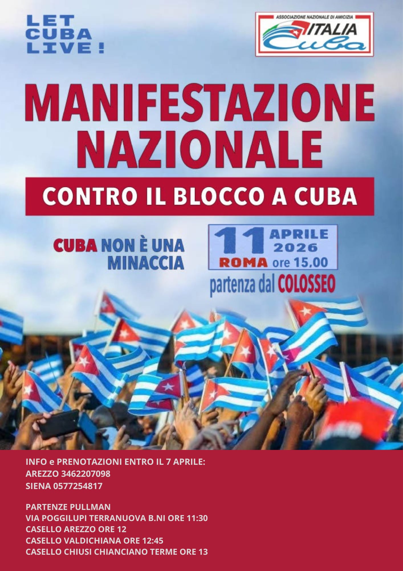 11 aprile a Roma: manifestazione nazionale contro il blocco a Cuba – pullman da Arezzo e Siena